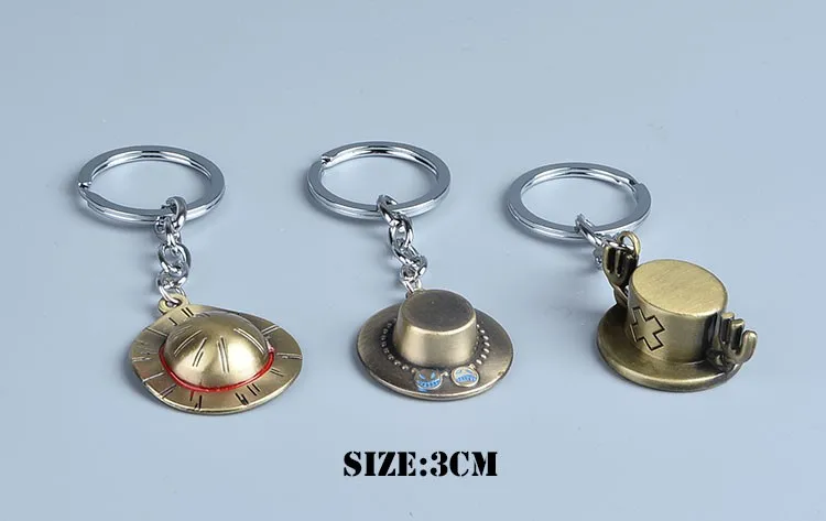 Anime One Piece Luffy Straw hat Keychain & Ace & Chopperman Hat Metal Key Ring Cute Kids Toys Pendants Keychain